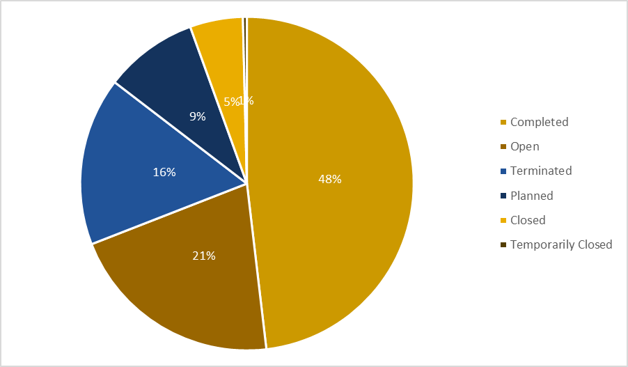 Trial status is one way to examine the current interest in radiopharmaceuticals. Using Citeline’s Trialtrove, we can see that 1,460 radiopharmaceutical trials are on record and almost 28% of them are planned or ongoing.