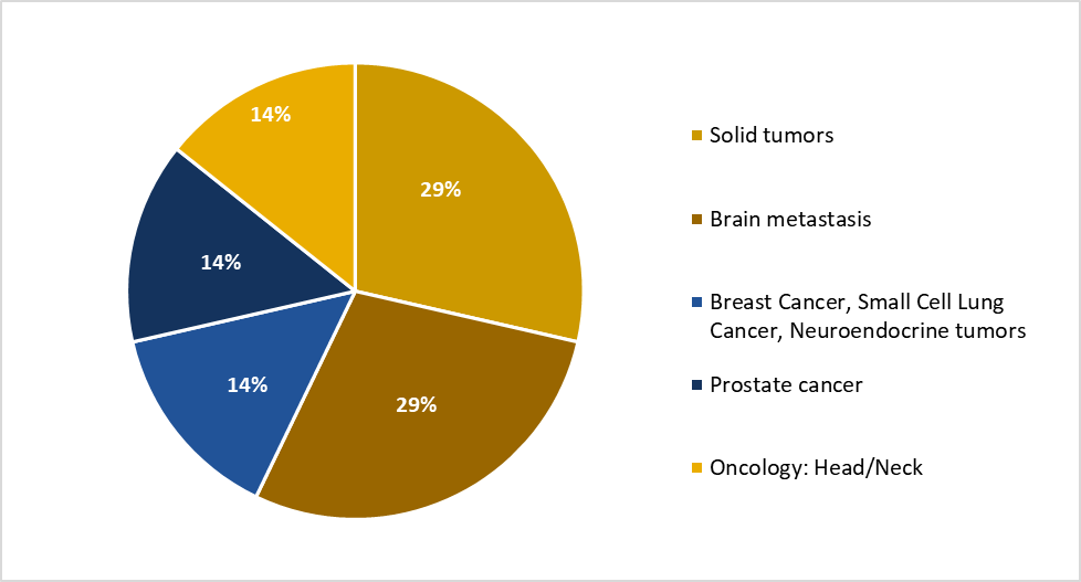 Our radiopharmaceutical clinical trials span multiple indications in oncology. The following graphic breaks down our experience by indication.