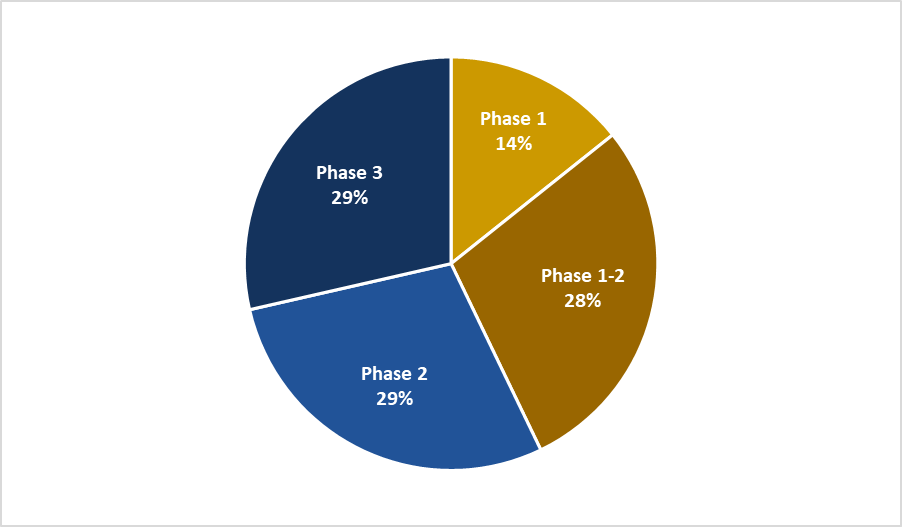 Each phase of a radiopharmaceutical clinical trial has a purpose in deducing drug safety, efficacy, and dosage. These data pinpoint a significant number of trials in early development with over 80% of trials in Phase 1, Phase 1-2, or Phase 2.
