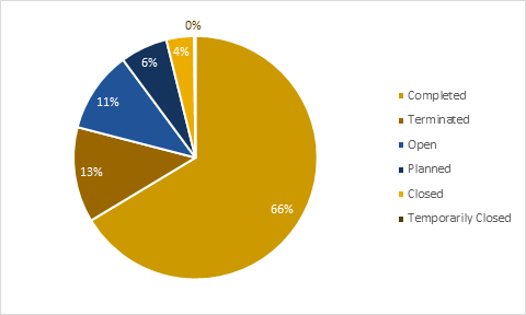 Around 17% of rare metabolic trials are current in that their status is Open or Planned.