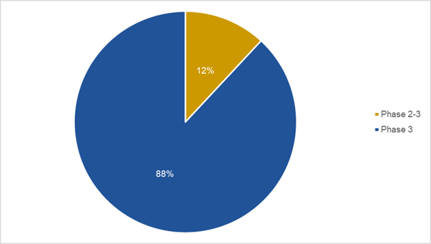 Late-phase oncology trials encompass both Phase 2-3 and Phase 3 studies, with the latter now being the more prevalent model. This split underscores the prioritization of robust, large-scale data collection needed to support regulatory approvals and establish the therapeutic value of new oncology treatments.