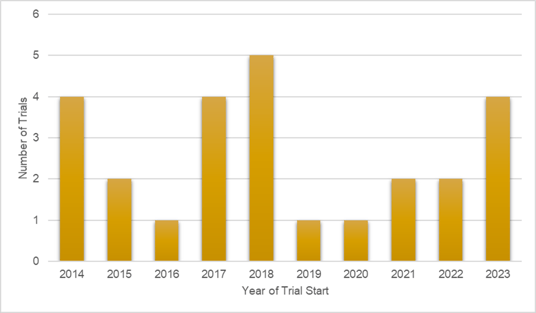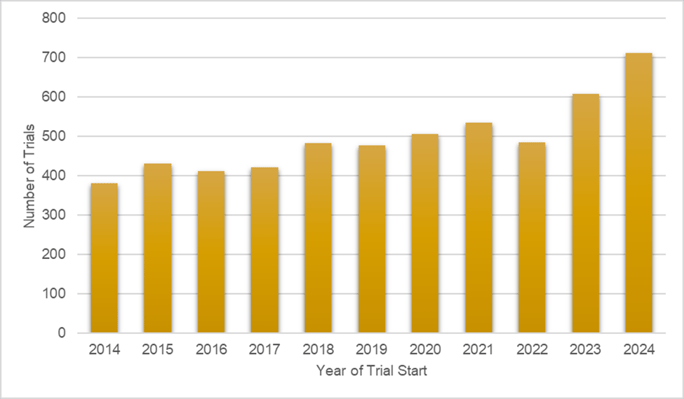 Late Phase Oncology Trials by Start Date, 2014-2024
