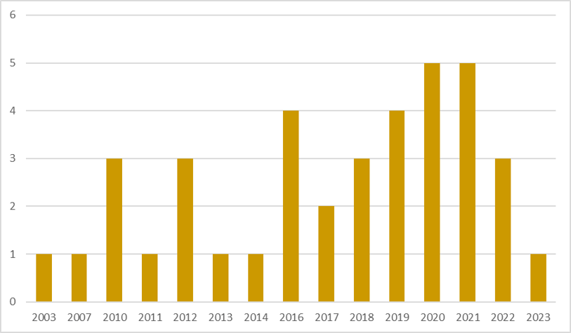 Over recent years, we have seen a significant rise in clinical trial activity in Non-Hodgkin’s Lymphoma as evidenced by the rapid increase in new studies launched annually. The data below provides a visualization of the planned and ongoing NHL trials by start date.