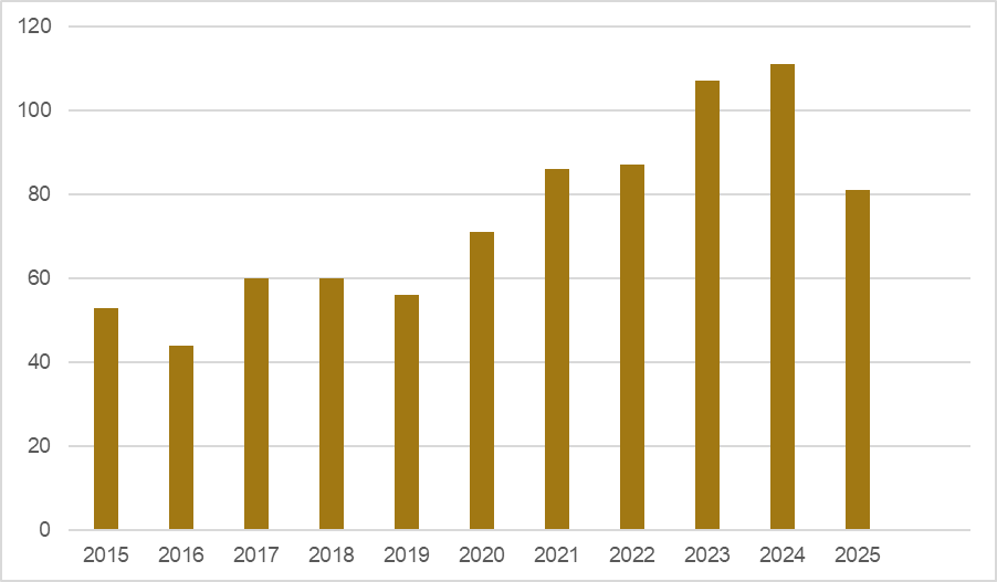 Radiopharmaceutical Trials by Start Date, 2015-2025