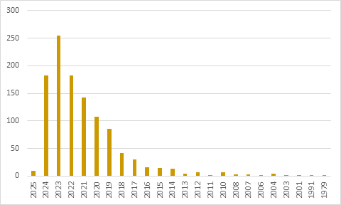 The number of current rare metabolic trials is increasing year over year. More than 250 trials in this indication were started in 2023.