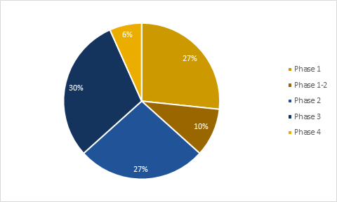 While Precision has conducted comparatively more early phase rare metabolic trials than later phase, the difference is marginal.