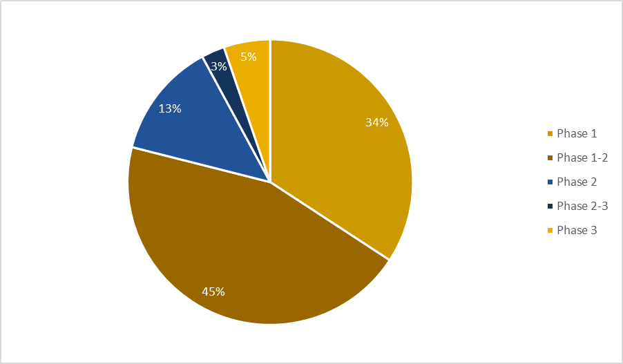 Analyzing Non-Hodgkin’s Lymphoma clinical trials by phase helps illustrate the progression of research in this indication. The vast majority of NHL trials are concentrated in phases 1 through 2, signifying a strong development pipeline with promising future treatment options.